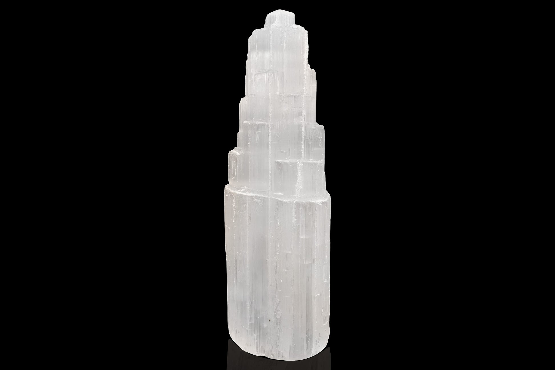 Selenite is a crystalline variety of the mineral gypsum, formed primarily by the evaporation of mineral-rich saltwater. As water bodies in ancient seas, caves, or saline lakes dried up, the concentrated calcium sulfate and other dissolved minerals precipitated and crystallized.